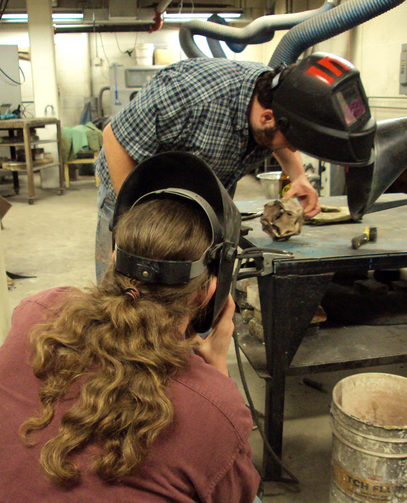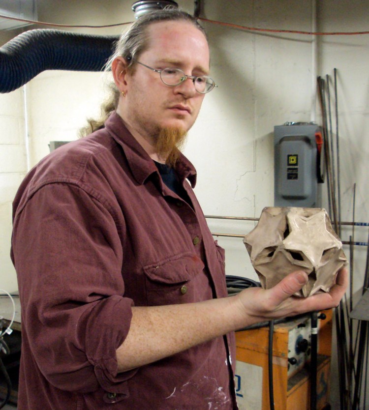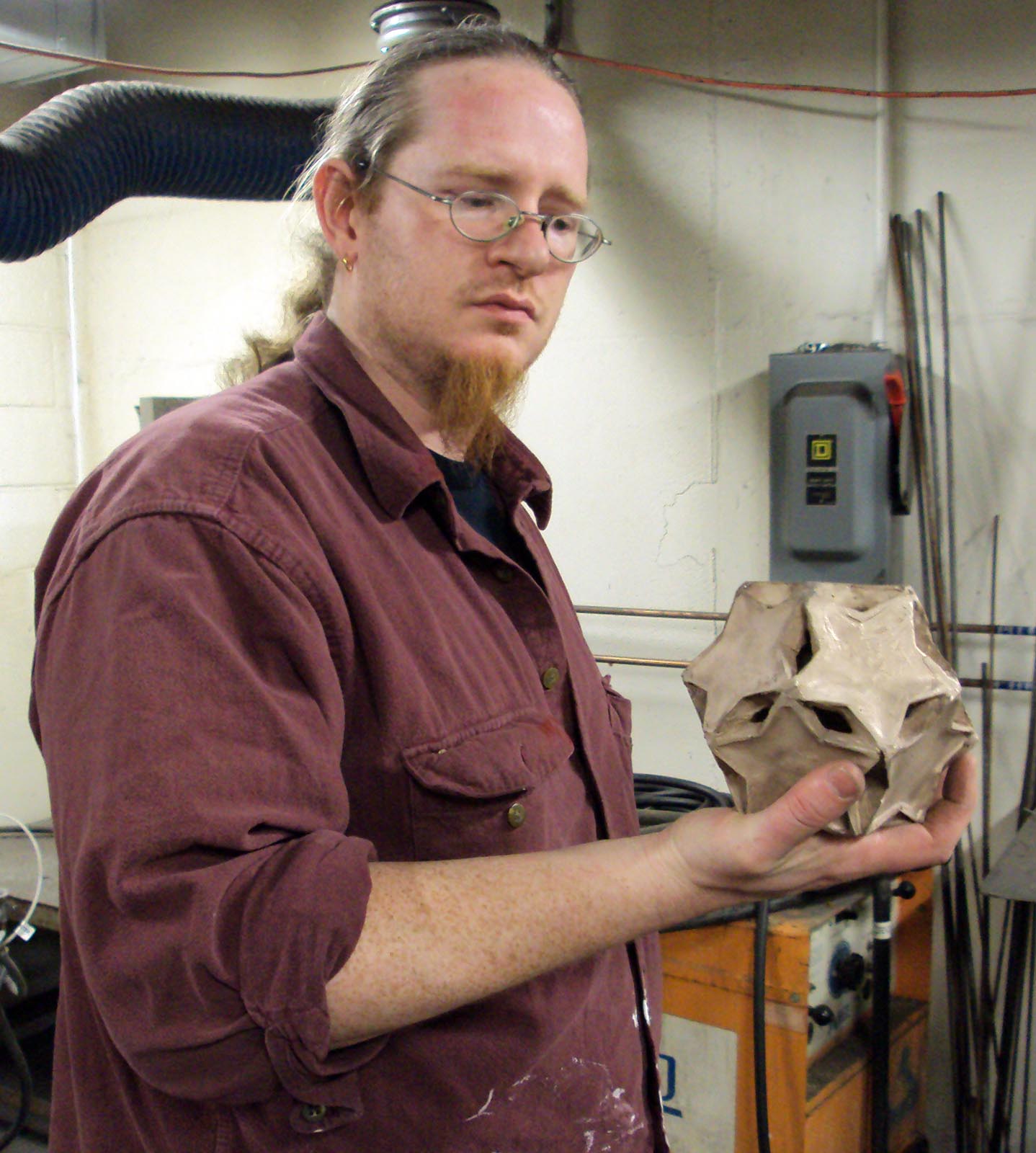 …and in the forms that make their way into my own work. Below, an experimental brick-based sculpture and a mezzotint featuring an invented pentagonally-based structure.