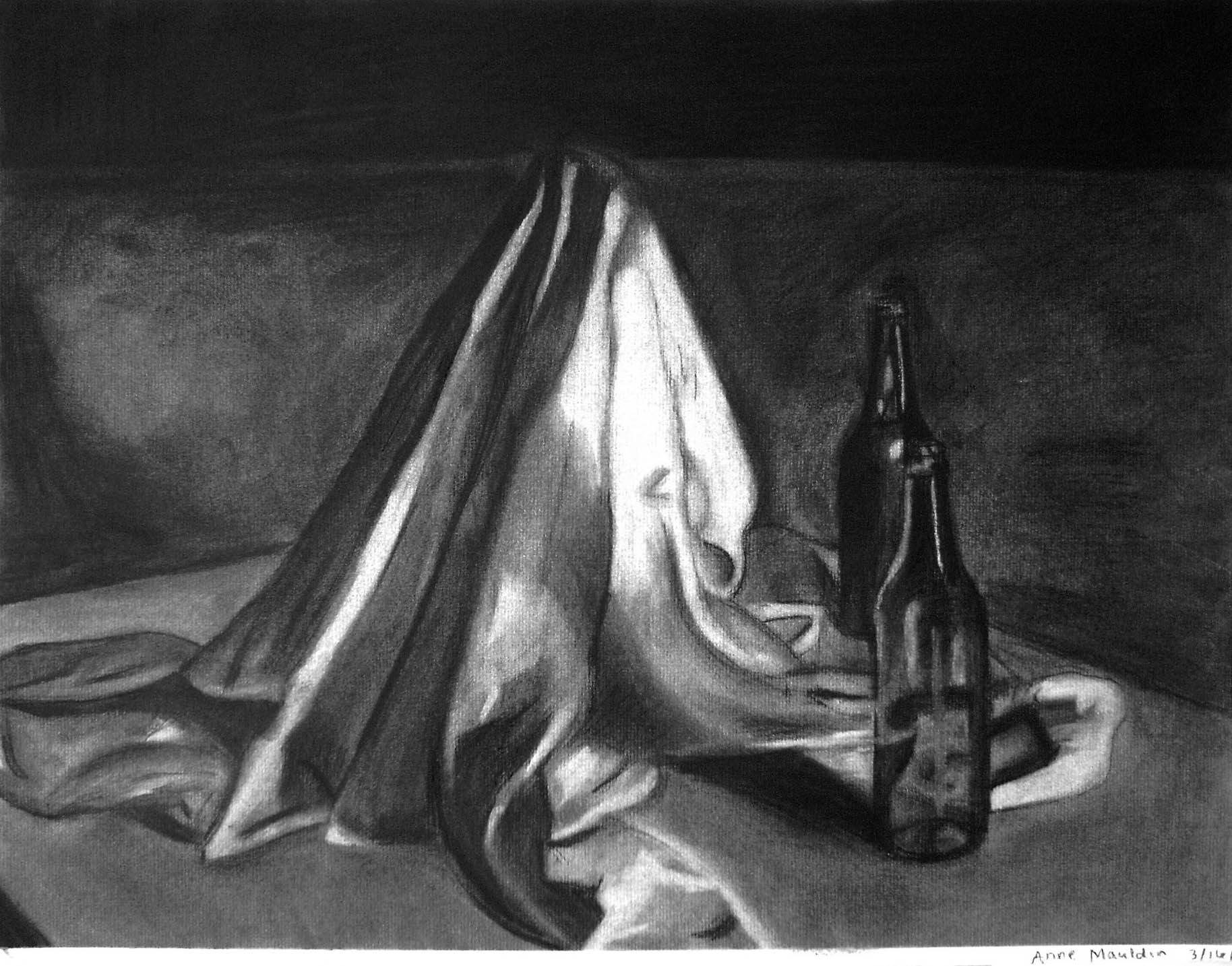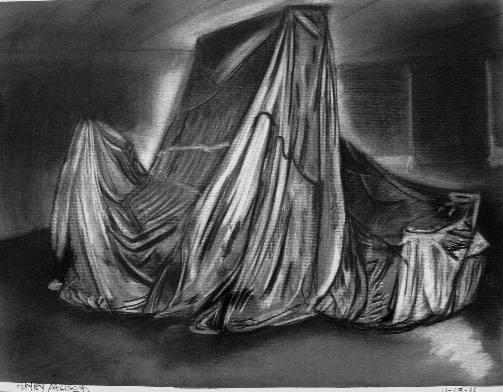Above: Anne Mauldin, Fabric Landscape, Charcoal on Paper, 18 by 24 inches, 2011.