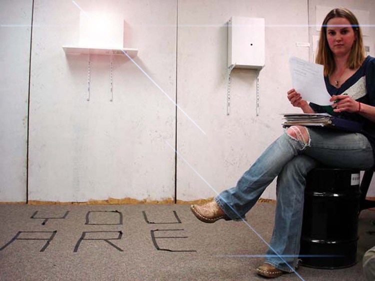 Above: Sloane and her peephole boxes, 2008.