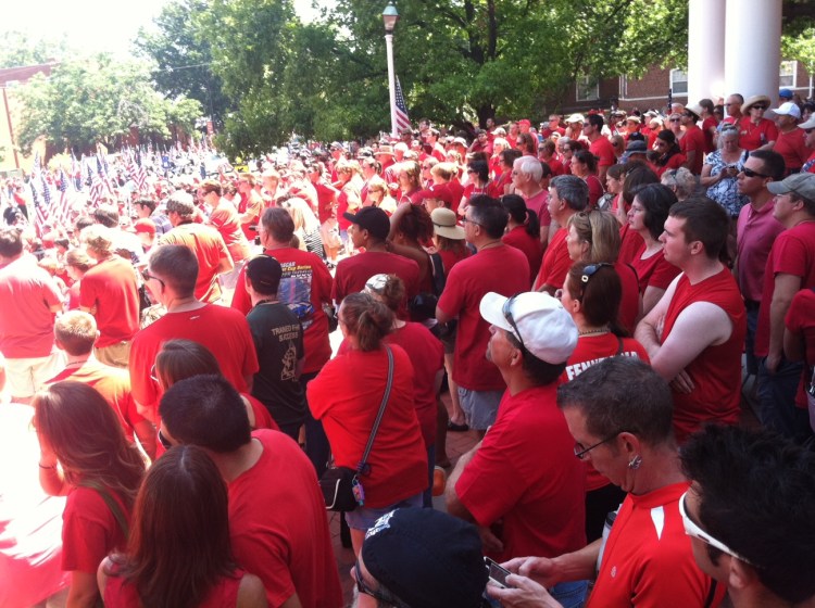 There was a moment when Sterling’s mother was making her way toward the church, and the crowd parted for her. As she moved through a wave of clapping began to take shape. Wave after wave built into an ovation that lasted for minutes on end. It was a whole community of support – not making it any easier, not pretending it was all ok – but recognizing her sacrifice. We’ve been in these damn wars for so long now and most of us don’t have to count the cost so we needed to see her face. We needed to be near her and respect her. She’s paying. Her son paid. They paid in real blood and real tears and real years gone. If the only thing Columbia could give this woman was an ovation of encouragement, if all we could do was let her memory of this day be filtered through our good wishes and red shirts, if our best job was to keep her from seeing the blasphemy that the Westboro picketers brought… then we did well. We couldn’t make it better, but we kept them from making it worse.