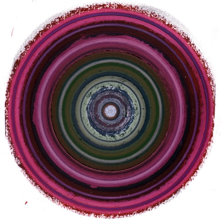 I’ve created nearly 30 new mandalas in the last few weeks. Each is primarly oil or oil pastel on paper with colored pencil, crayon, or other mixed media added. Most are about 9 inches in diameter. Below are two of the group. Click for more detail.