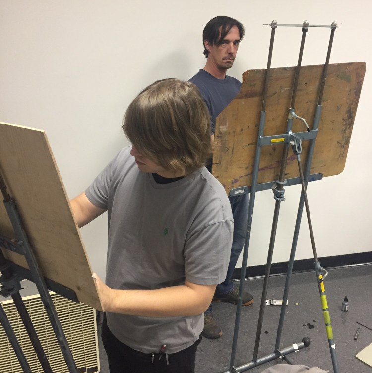 Zach Nutt and Nikos Karabetsos at work, November 3, 2016.