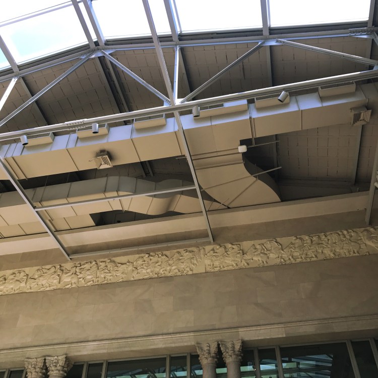 As I walked through the museum I was struck again by the beauty of the building itself. Here are just a couple shots of the rafters above the great stairs, the stairs themselves, and the majestic old wood floors of the main galleries… many memories made there.