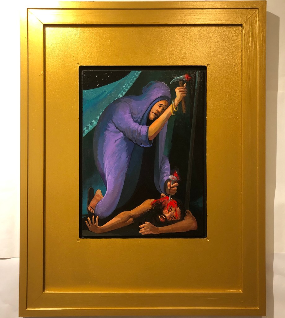 Ballou – A Bridegroom of Blood (Exodus 4:24-26). Acrylic on panel. 13×10.5 inches. 2019-2020.Ballou – Spilt Seed (Genesis 38:6-10). Acrylic on panel. 13.5×10.5 inches. 2019-2020.Ballou – Jael and the Tent Peg (Judges 4:21). Acrylic on panel. 14×10.5 inches. 2019-2020.Detail