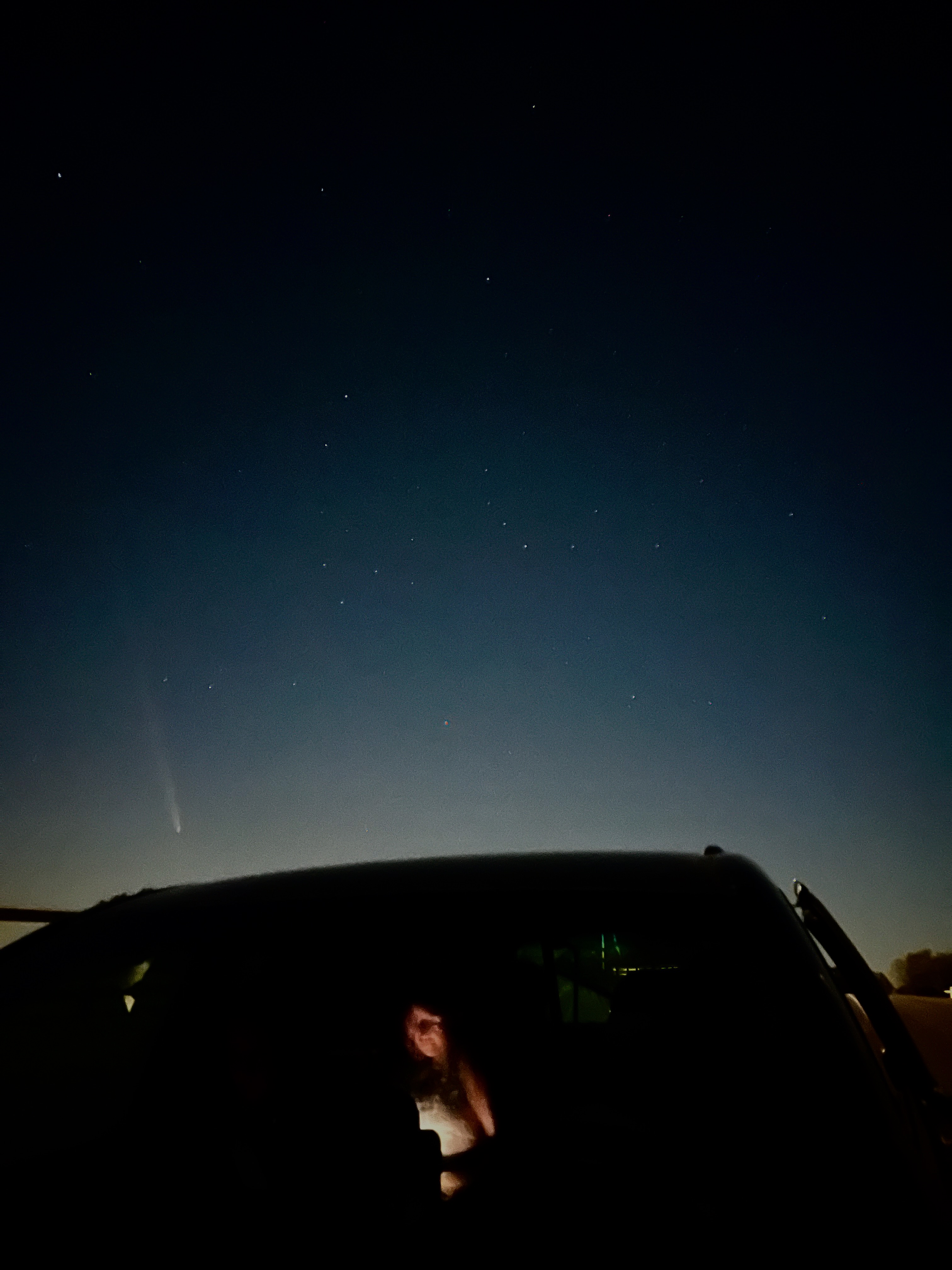 The beginning of the third week of the month was best, with some striking observations made possible with a short exposure time. Each night the viewing has been a little more difficult, and the tail a little shorter, so it may be beyond easy spotting very soon. It’s worth it, though. Once in a lifetime event here, folx.
