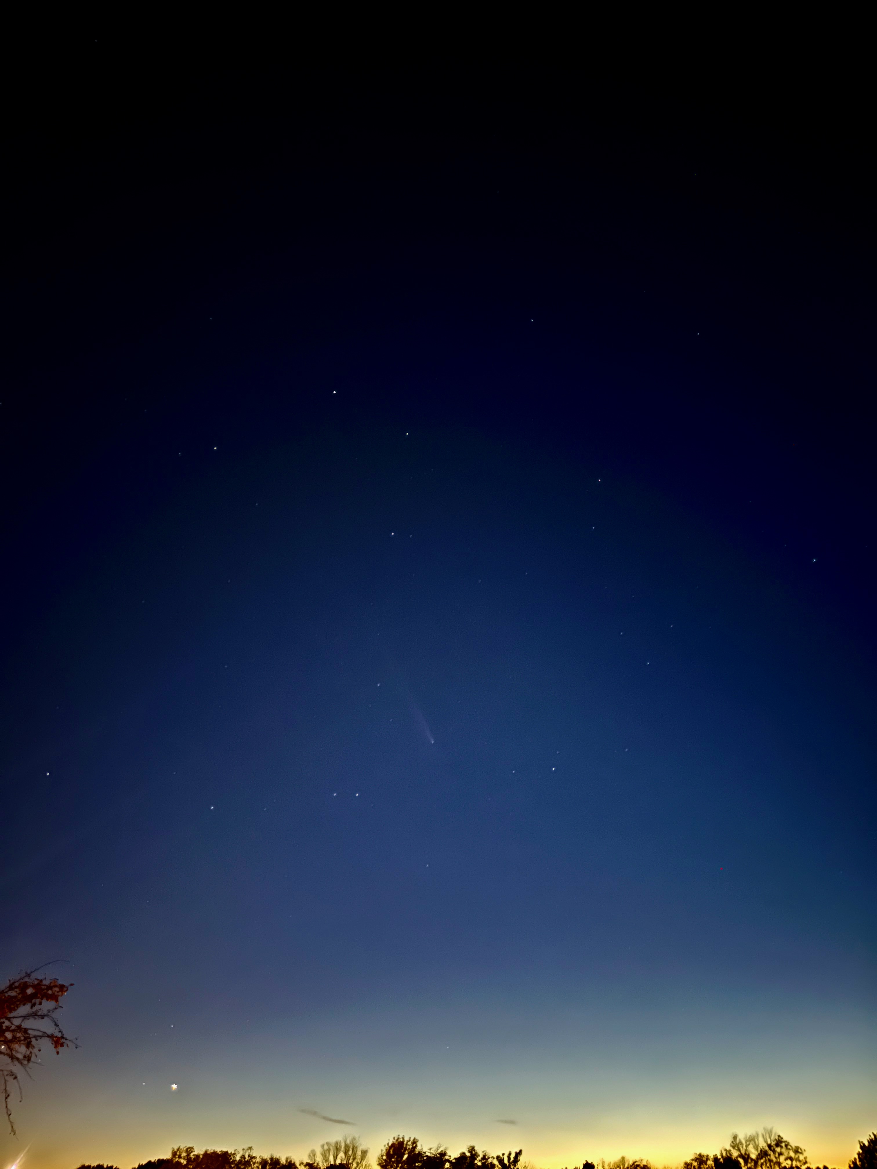 This October has been an amazing time to see the cosmic scale on display. Comet Tsuchinshan–ATLAS passed through, giving us multiple viewing opportunities each night after sunset. It was here some 80,000 years ago, and “the most current calculations from NASA’s Solar System Dynamics group show that it is on a hyperbolic path, meaning that it will not return.”