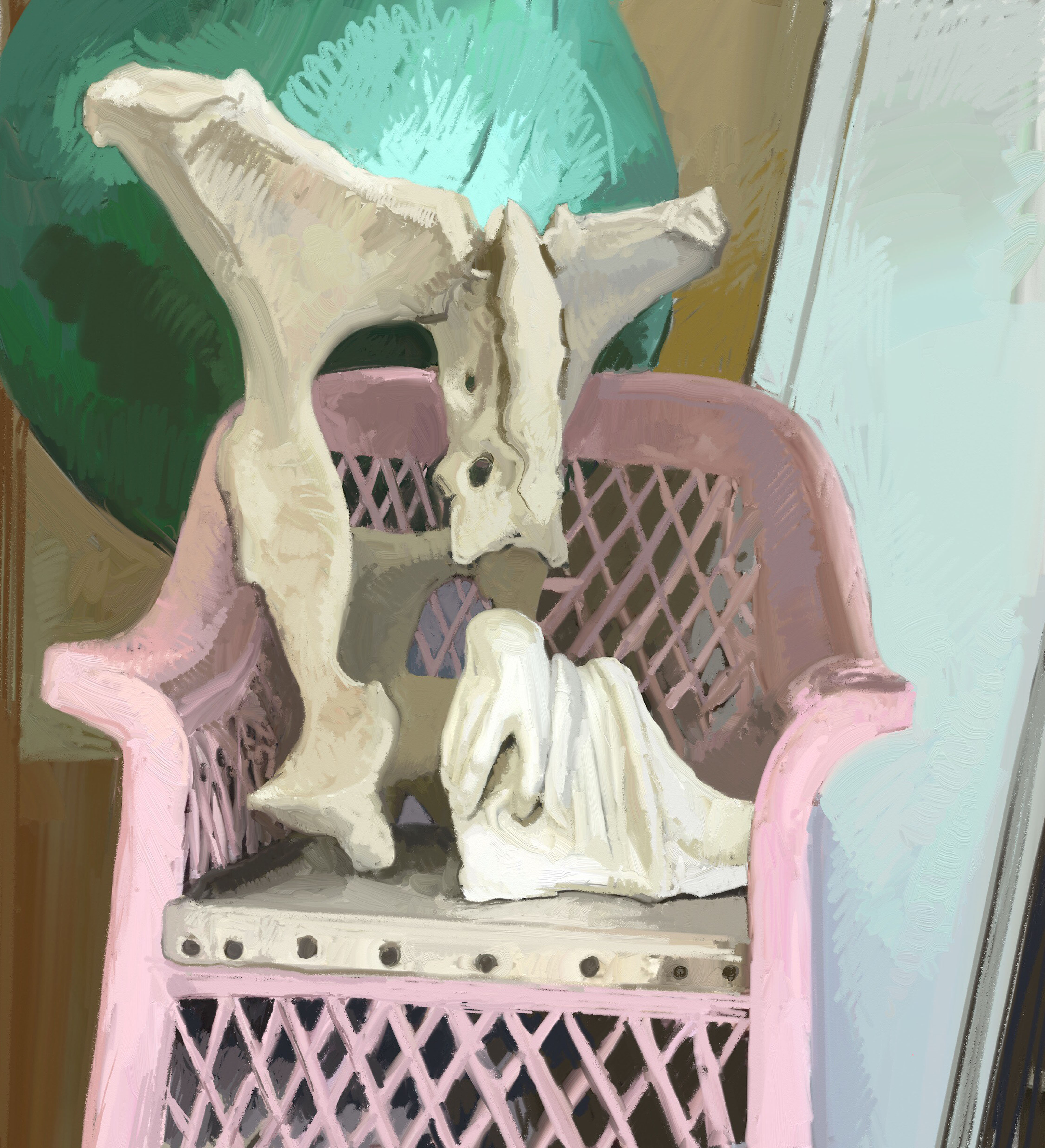Gracie holding Rushton in Bedroom, Massachusetts oil on wood, 2009, verso of Portrait of Gretchen, oil on wood, 2009