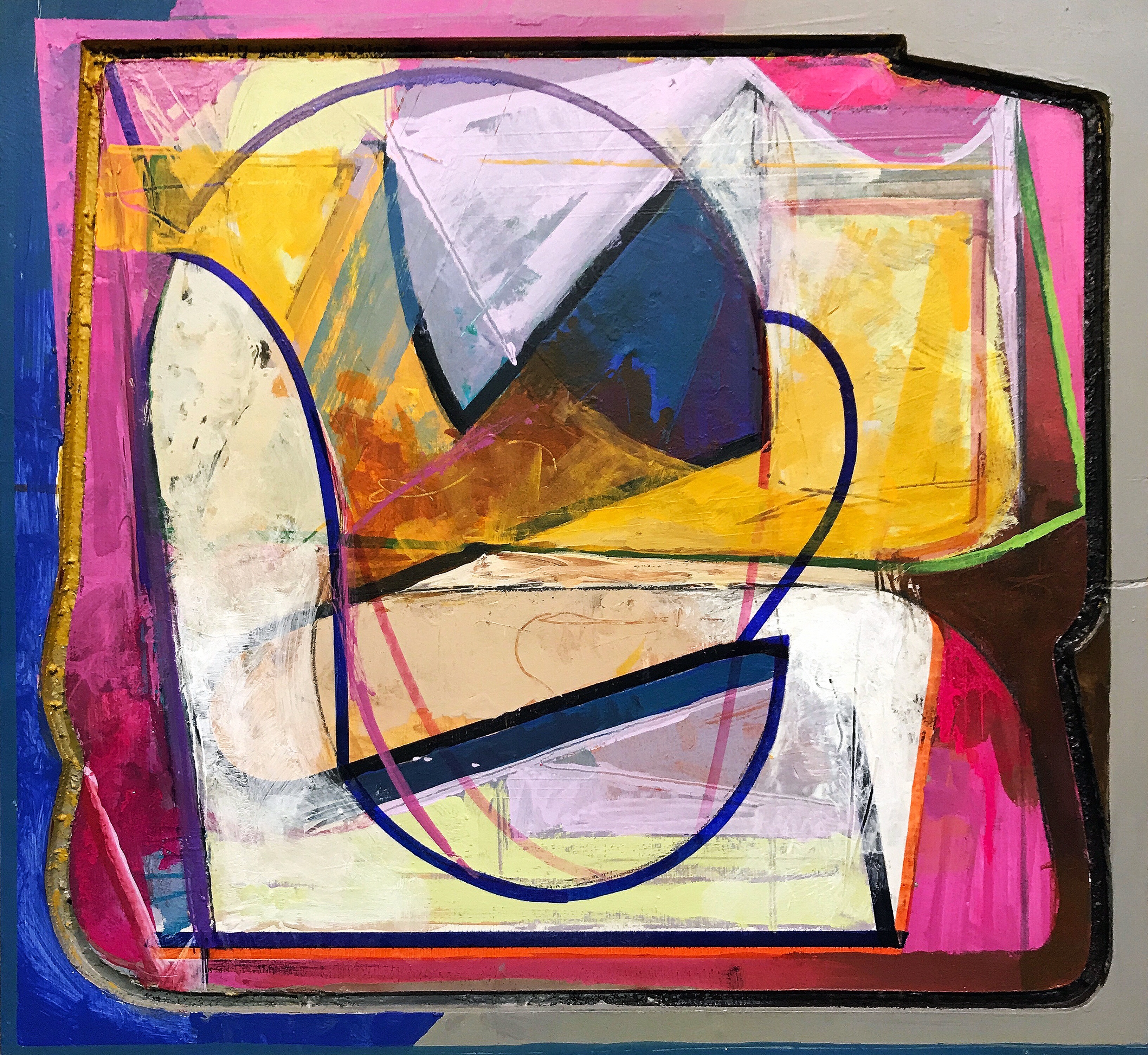 The near-death I experienced purged my interests. Though I have completed a few straight representational works since that cardiac arrest in February 2016, the vast majority of my work has focused on a series of abstract investigations I call WHENEVERwhen. In the WHENEVERwhen series I deploy an array of formal strategies that accumulate over time and leave a record within the work. These strategies are diverse; they might function in terms of simultaneity of form – for example, an area may appear to manifest as both light and solid structure – or display a counterintuitive sense of weight and balance. I have also incorporated a significant amount of collage, relief cutting, carving, and digital prototyping into my working methods.