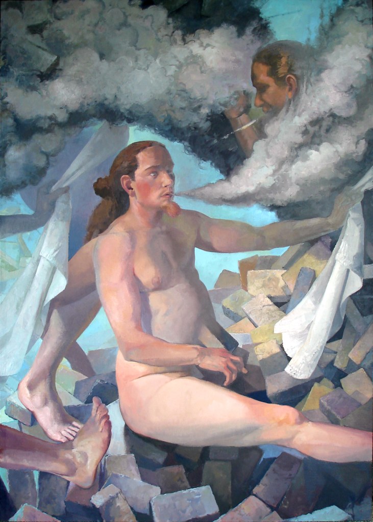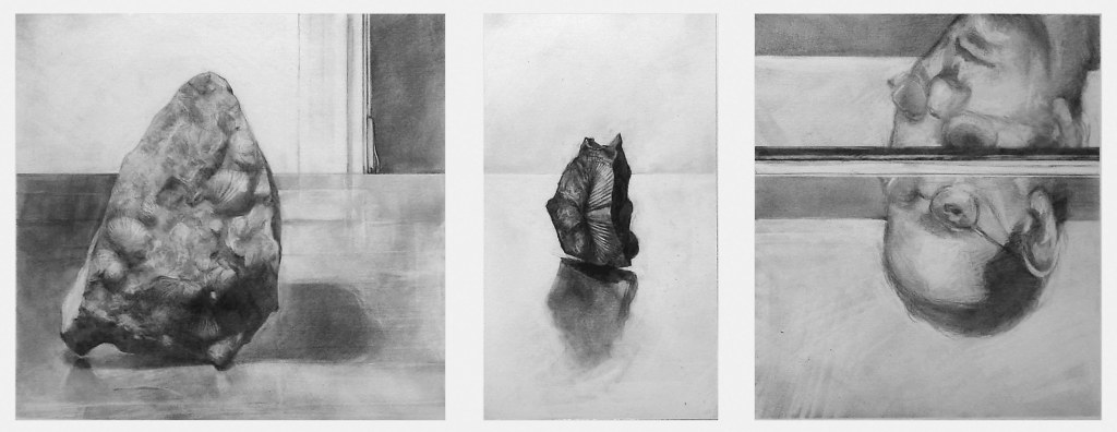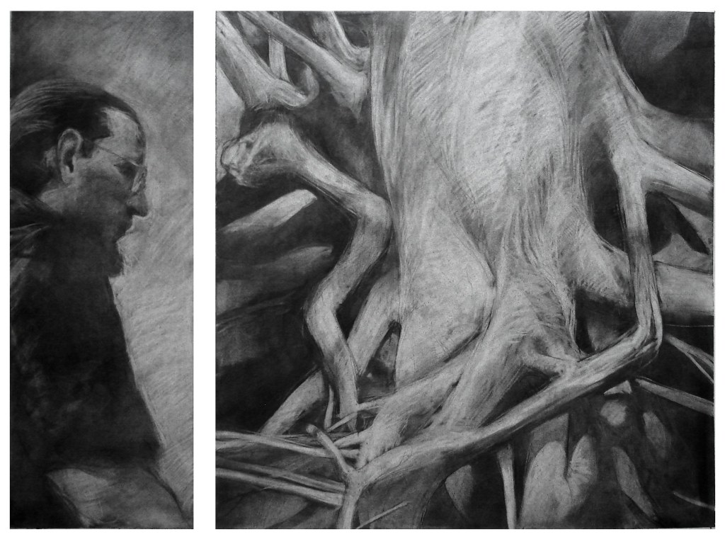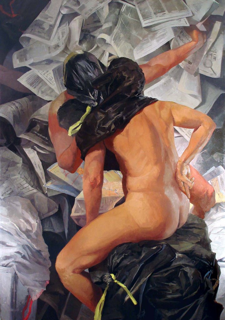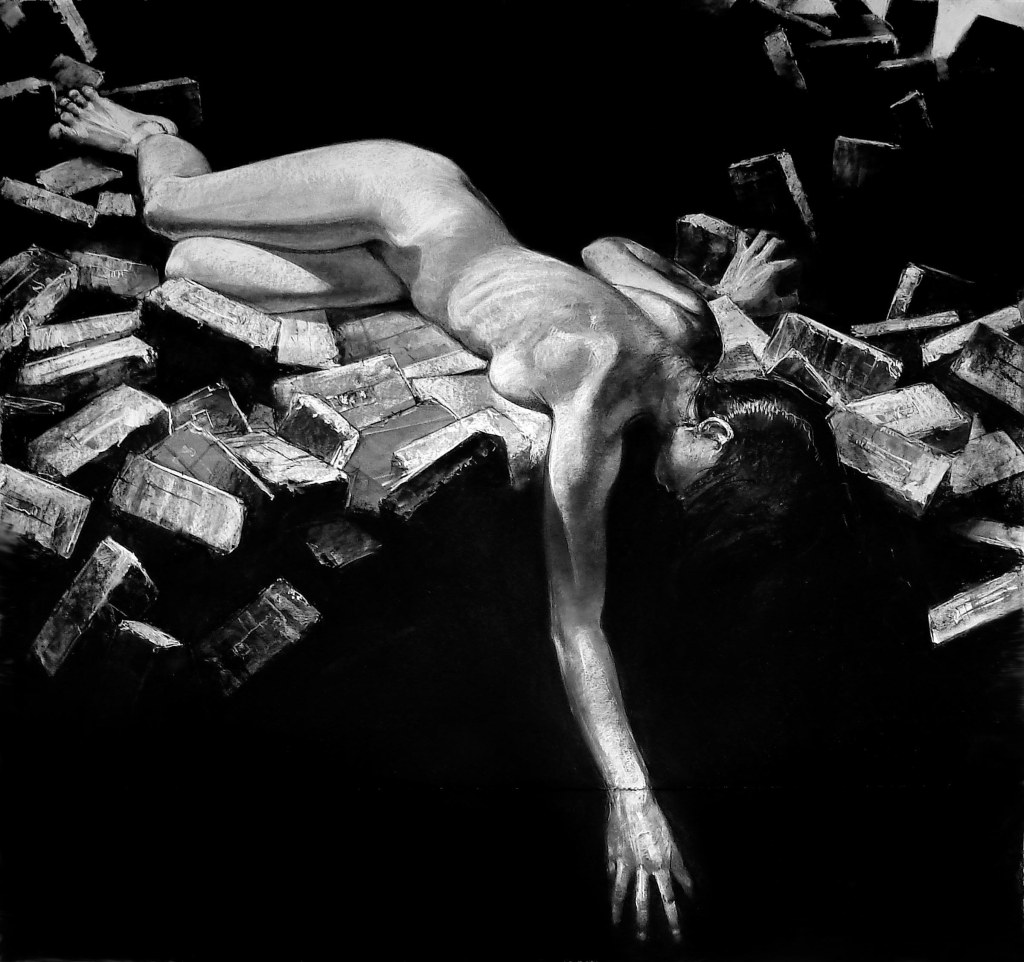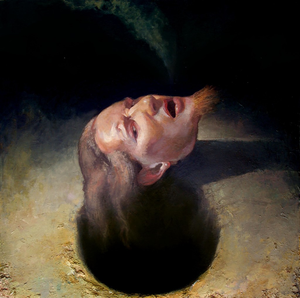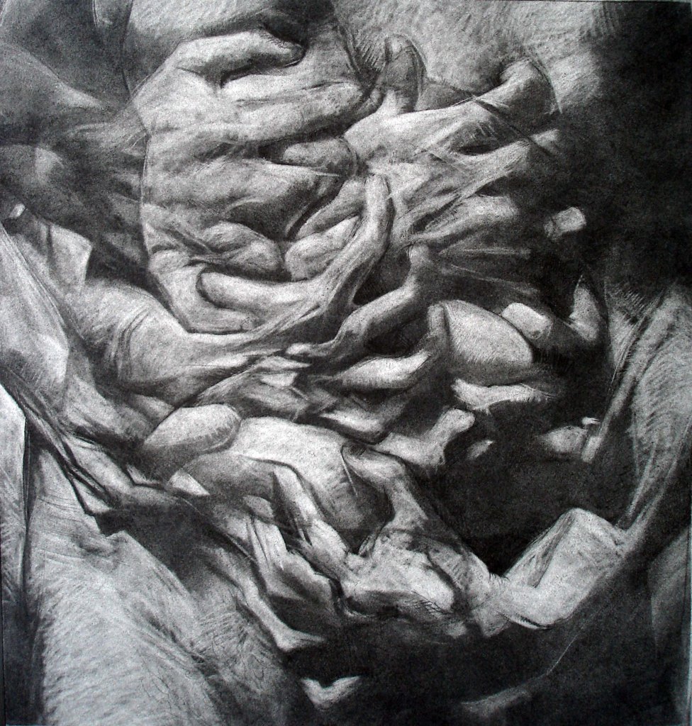 After moving to Missouri to begin teaching, I found myself trying to – in a sense – finalize the ideas that had dominated my thinking through graduate school. I conceived of the body as a zone of incident and arena of contention. During this time I wrote an as-yet unpublished text about the uncovered body in Christian theology, and had been looking at books such as Nigel Spivey’s Enduring Creation: Art, Pain, and Fortitude and James Elkins‘s Pictures of the Body: Pain and Metamorphosis. The ideas in those books have continued influencing my work and thinking, but 2009 marked pivot point away from the rectilinear format and toward the tondo (circular) format.