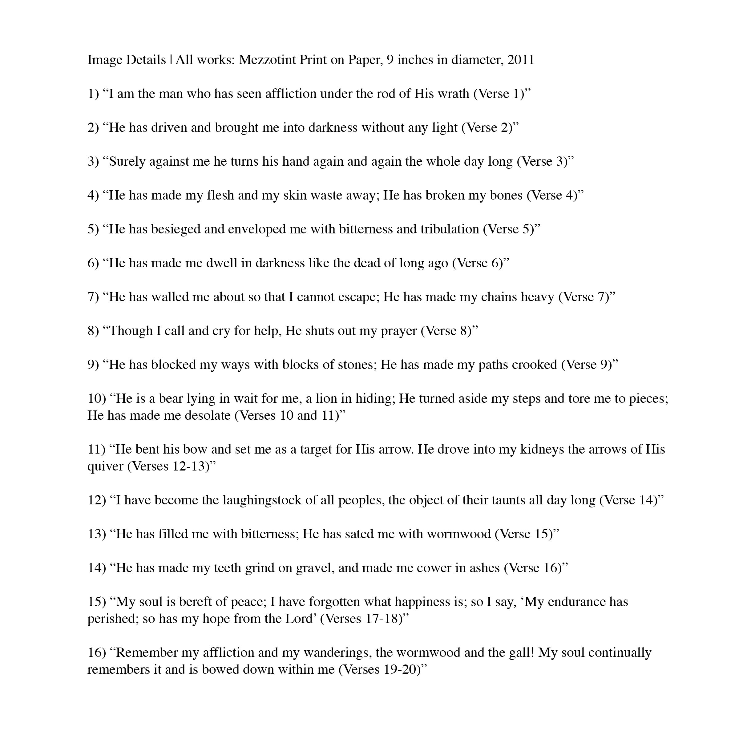 2009-2010 The Lamentations 3 Series A catalog of these works (I showed the entire series at Gordon College in 2011) is available here. Share this: Click to share on Facebook (Opens in new window) Facebook Click to share on X (Opens in new window) X Like Loading...