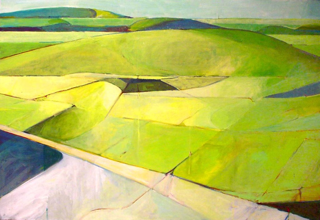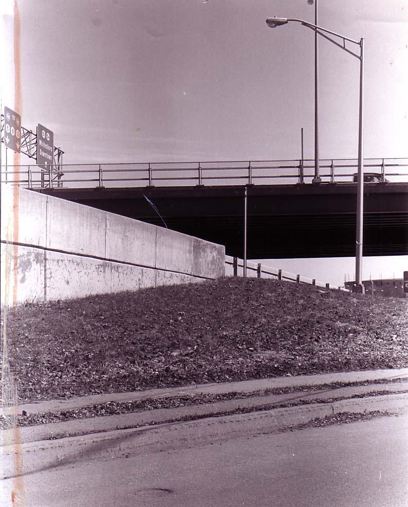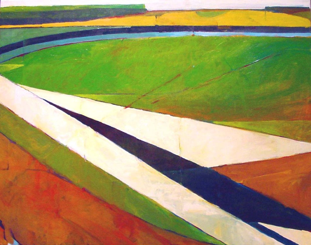 Overpass, Green Embankment. Acrylic on canvas. 30×36 inches. 1997.