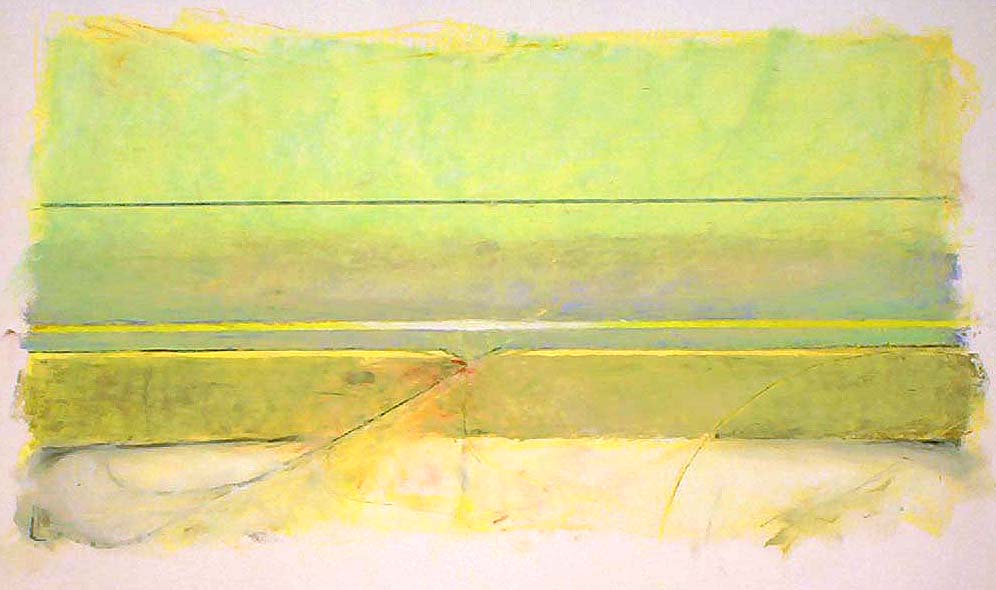Yellow Bridgescape. Acrylic on paper. 32×50 inches. 1998.