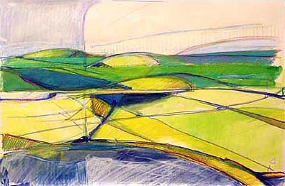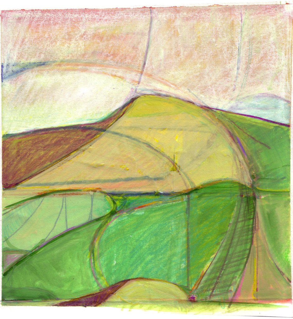 Study for Untitled Landscape. Colored pencil and acrylic on paper. 12×16 inches. 1999.