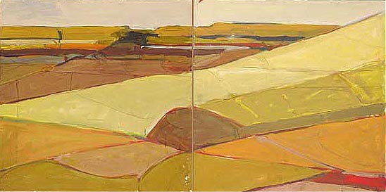 Study for Untitled Landscape. Gouache on two panels. 16×32 inches. 1999.