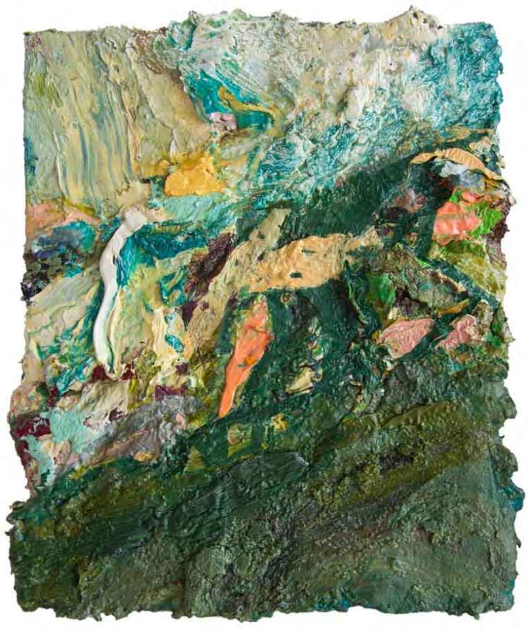 Next to the Sandbothe Mystery Snowball piece is a striking print on handmade Yucca paper by Caleb McMurray. The untitled work features a doorway or aperture, something that McMurray has returned to again and again.